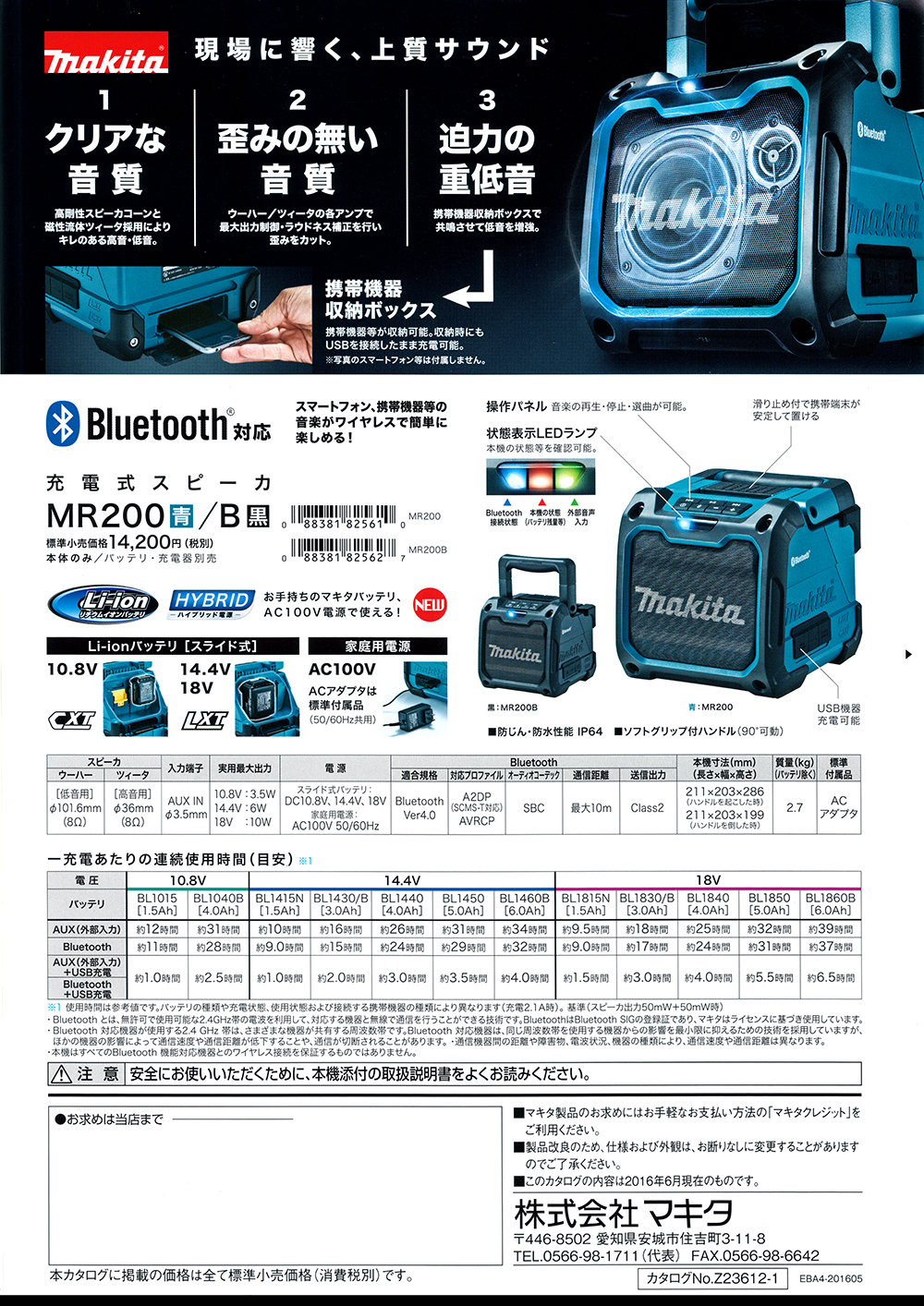 マキタ 充電式スピーカー MR200